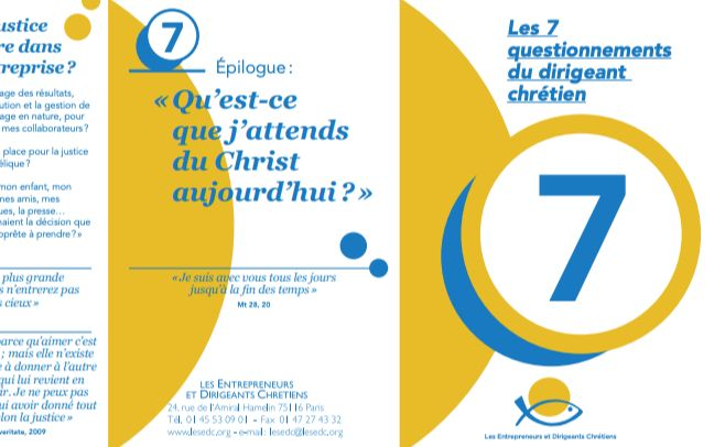 Un groupe de travail des EDC a élaboré en 2013 ce document qui propose 7 questions posées au dirigeant chrétien de notre temps.