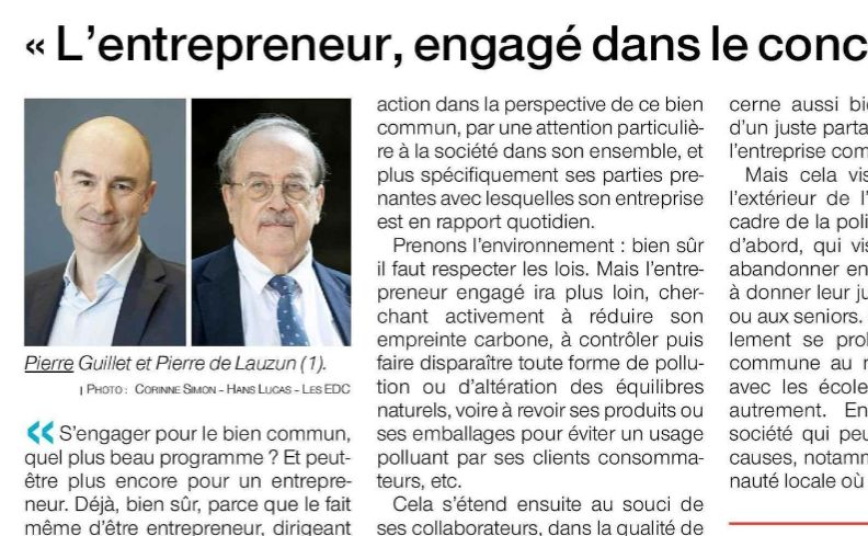 Tribune Ouest-France : "L'entrepreneur, engagé dans le concert de la vie sociale"
